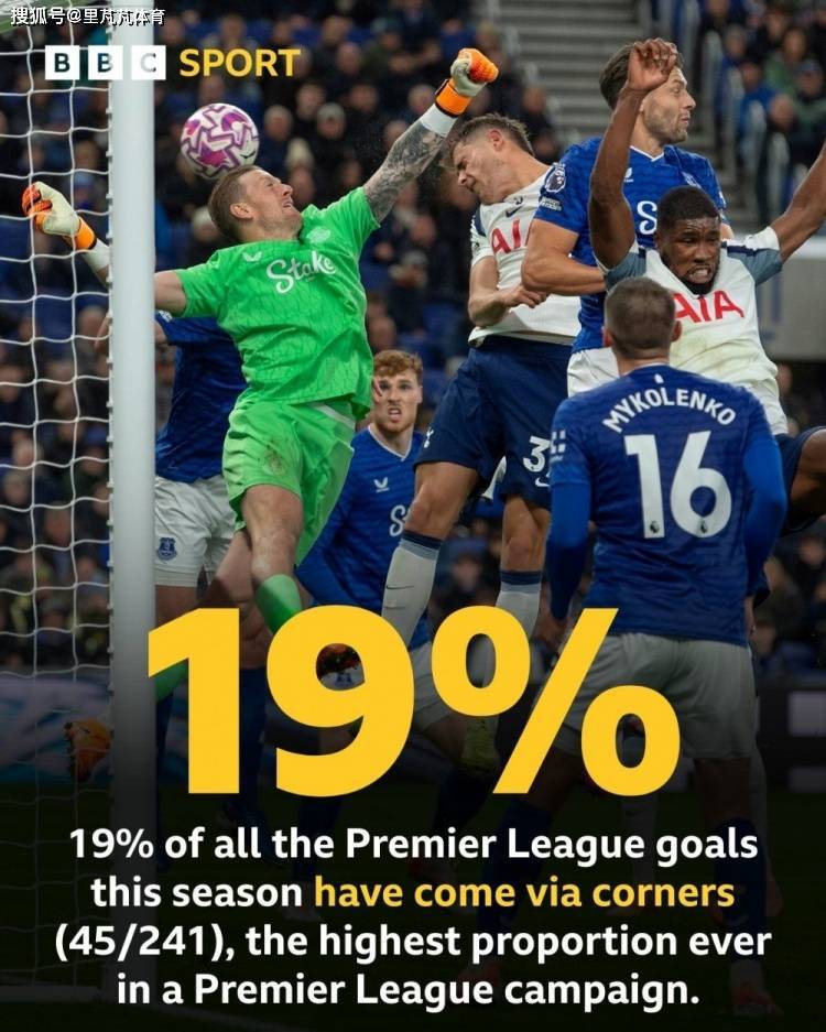 数据统计显示,本赛季英超共进241球、其中45球来自角球进攻,19%的比率也是英超单赛季最高的。
